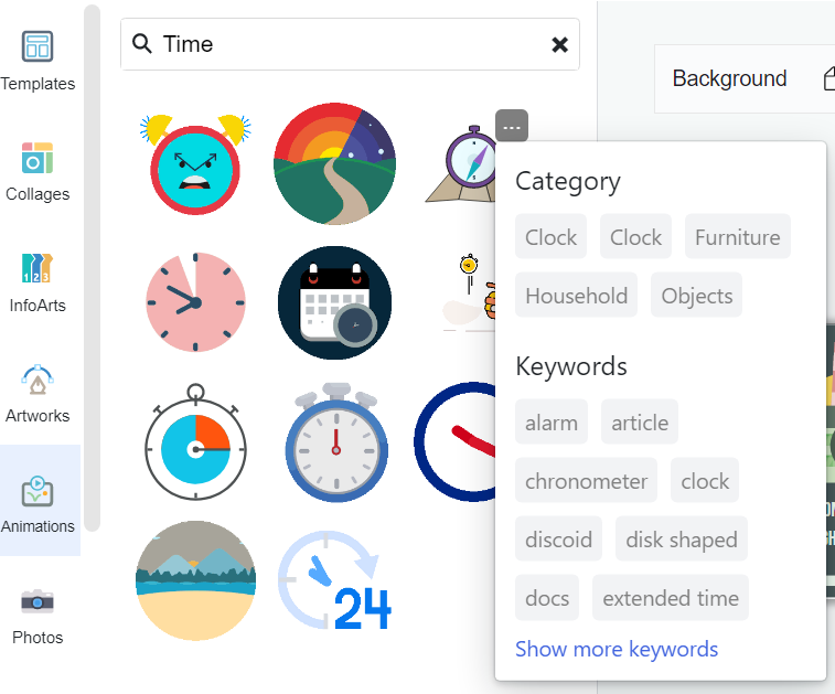 Klicken Sie oben rechts auf „…“, klicken Sie aufKategorieoderStichwörterum ähnliche/verwandte Assets zu finden.