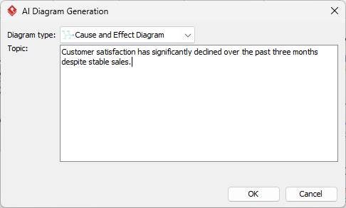 - Choose Cause and Effect Diagram in the AI Diagram Generation dialog.