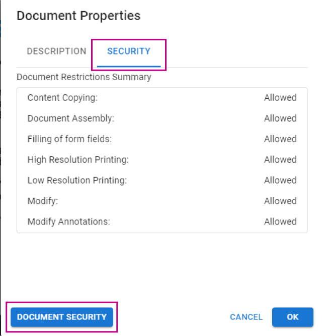 以下の項目を選択してください「セキュリティタブ」セキュリティ設定の大部分を表示し、[ドキュメントセキュリティ]をクリックして設定を開きます。