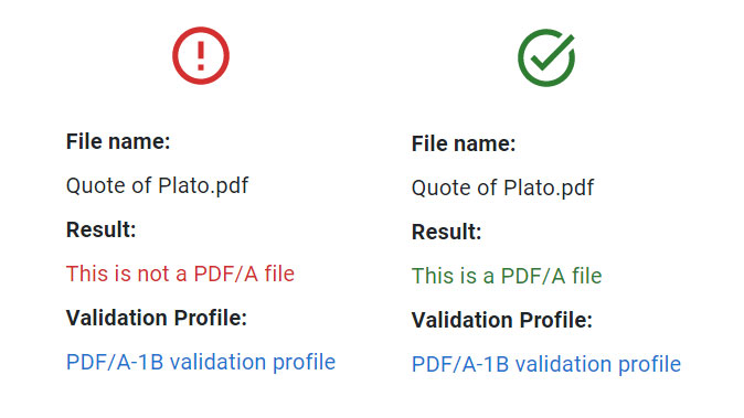 5. After the validation, there will be 2 kinds of results, showing whether the PDF is in PDF/A standard or not.