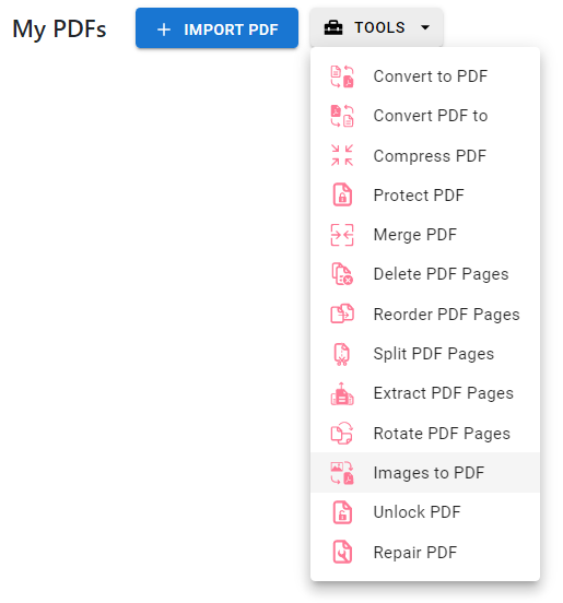 2. Press the “TOOLS” button and select “Images to PDF”.