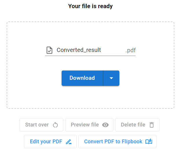 4. Now the PDF file has been generated from the specified images, you can rename the outputting PDF file, and press the Download button to download it.