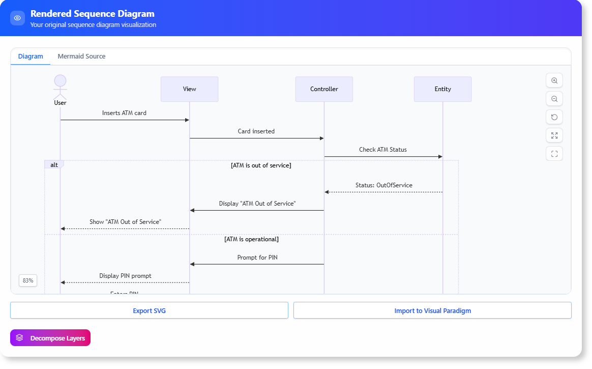 - Create Accurate Sequence Diagrams: Use the AI-generated, decomposed sequence as a perfect blueprint for creating a detailed and accurate UML Sequence Diagram, ensuring your design is robust and ready for development.