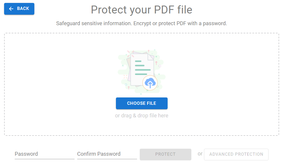 3. Upload your PDF files. After uploading the PDF file, you can specify your PDF password at the bottom, and press protects button to proceed
