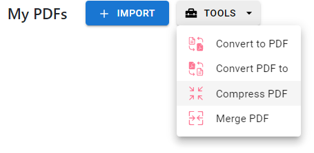 - Press the “TOOLS” button and select “Compress PDF”.