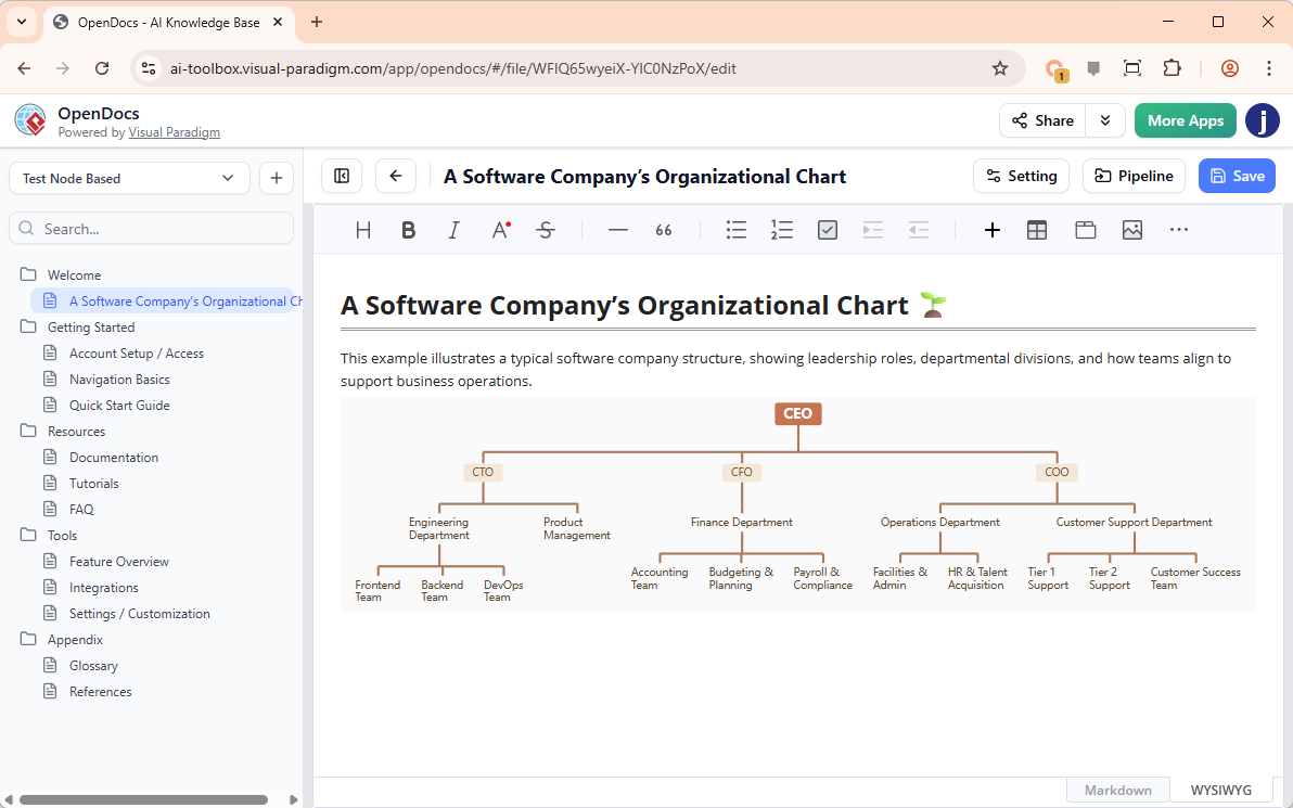 Following the successful integration of our mind map editor, Visual Paradigm is excited to announce the next step in our documentation revolution. We have officially enhanced OpenDocs to support a fully integrated Organization Chart editor. This update is designed to help businesses, HR professionals, and project managers visualize team hierarchies and reporting lines with unprecedented speed and precision.