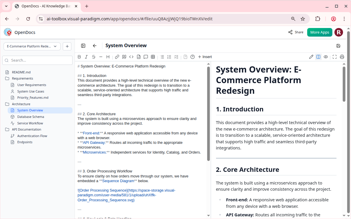 OpenDocs is a next-generation AI knowledge management tool that allows you to create, organize, and share knowledge through a hierarchical “tree” structure. Think of it as a smart, living library for your projects, products, or entire company. With an AI assistant built into its core, OpenDocs transforms static documents into a dynamic and interactive AI-powered knowledge base.