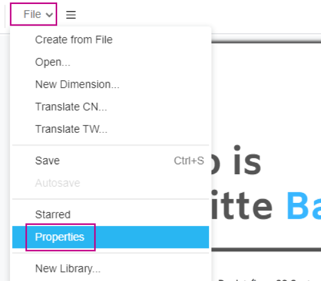 Как только файл будет импортирован, вы можете нажать«файл» и выбрать «свойства» с верхней панели.